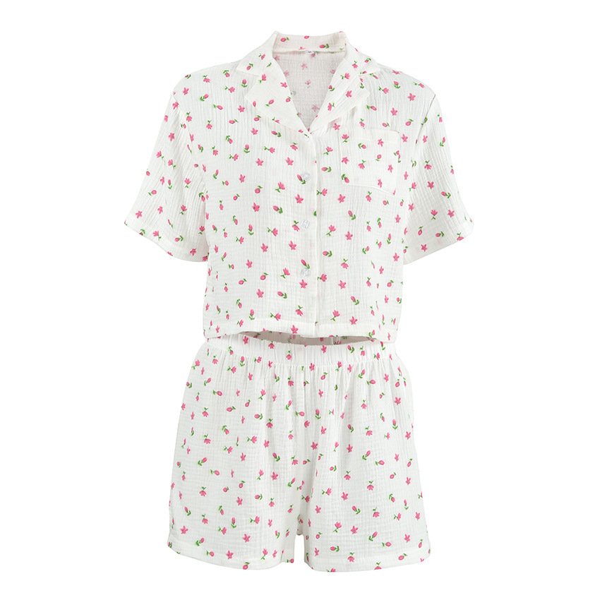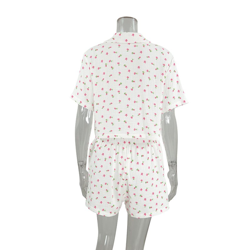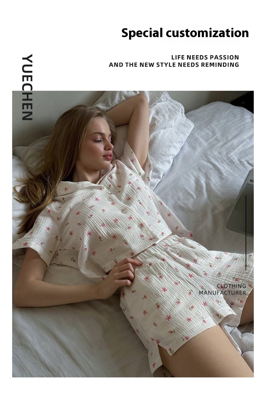 Thin Cotton Printed Comfortable Loose Breathable Short-sleeved Shorts Summer Pajamas Home Wear For Women