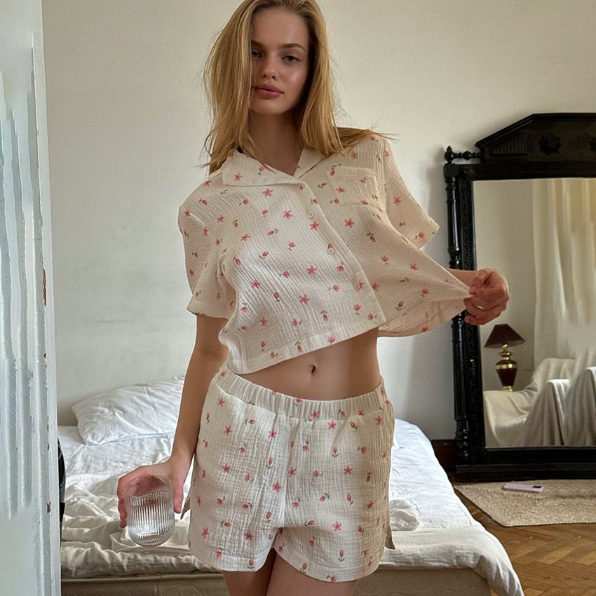 Be the first to review “Thin Cotton Printed Comfortable Loose Breathable Short-sleeved Shorts Summer Pajamas Home Wear For Women”