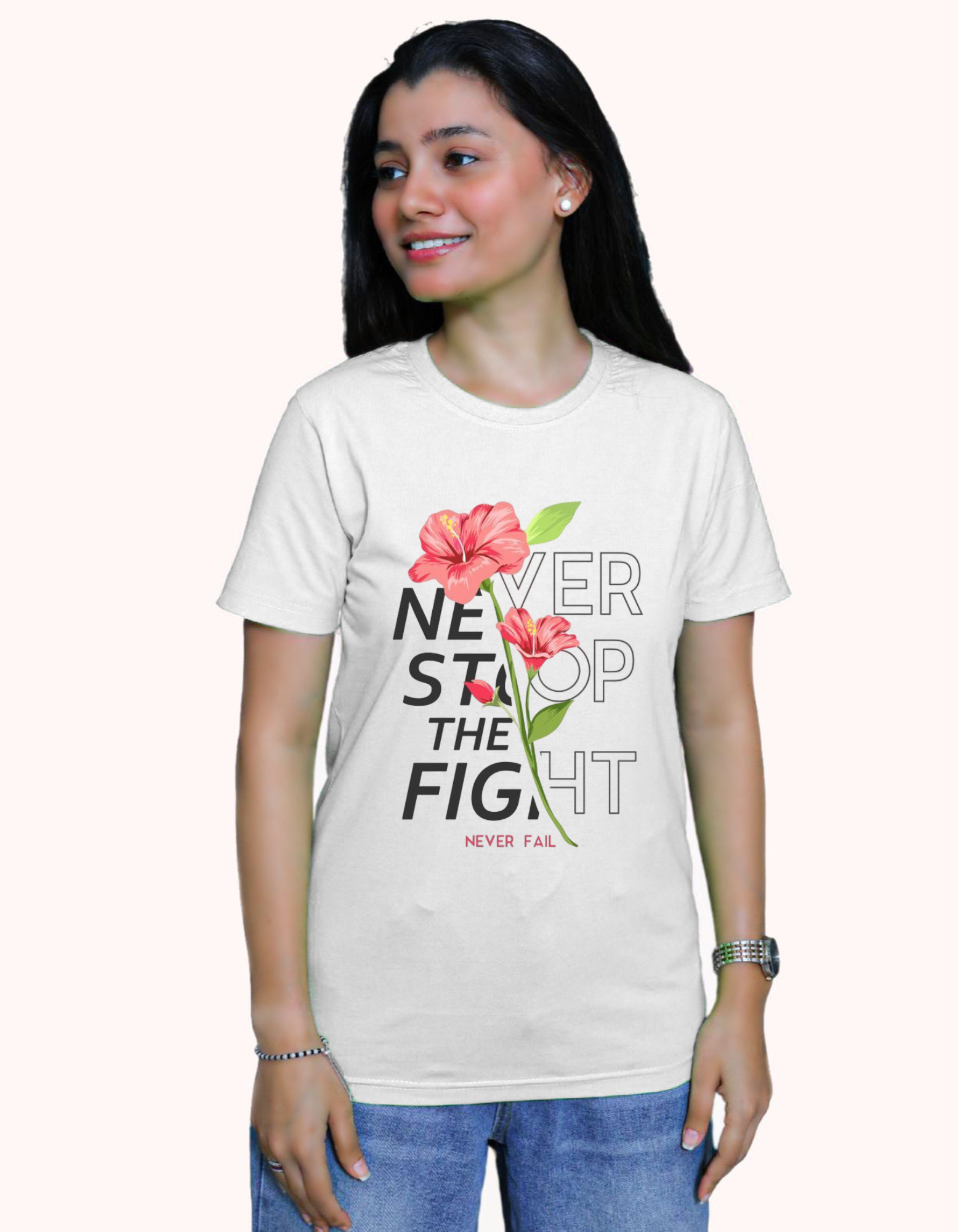 Stay effortlessly stylish and comfortable with our Women’s Cotton Round Neck T-Shirt. This versatile white tee is a wardrobe essential, perfect for casual and everyday wear.